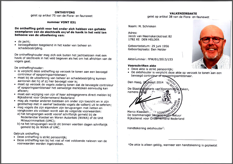 Ik heb het geluk gehad dat ik van mijn hobby mijn werk kon maken. Ik ben gediplomeerd valkenier en werk professioneel met roofvogels. Sinds 2006 heb ik een verjaagbedrijf en bestrijd ik overlast van verschillende soorten vogels, in Noord-Holland maar ook in andere provincies, zoals Zuid-Holland, Friesland, Flevoland en Utrecht.